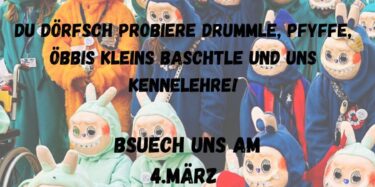 Oder an unseren Schnupperlektionen am 4. oder 11. März 2026 vorbeizuschauen, wo du «Drummle» und «Pfyffe» ausprobieren kannst sowie etwas kleines Basteln darfst.